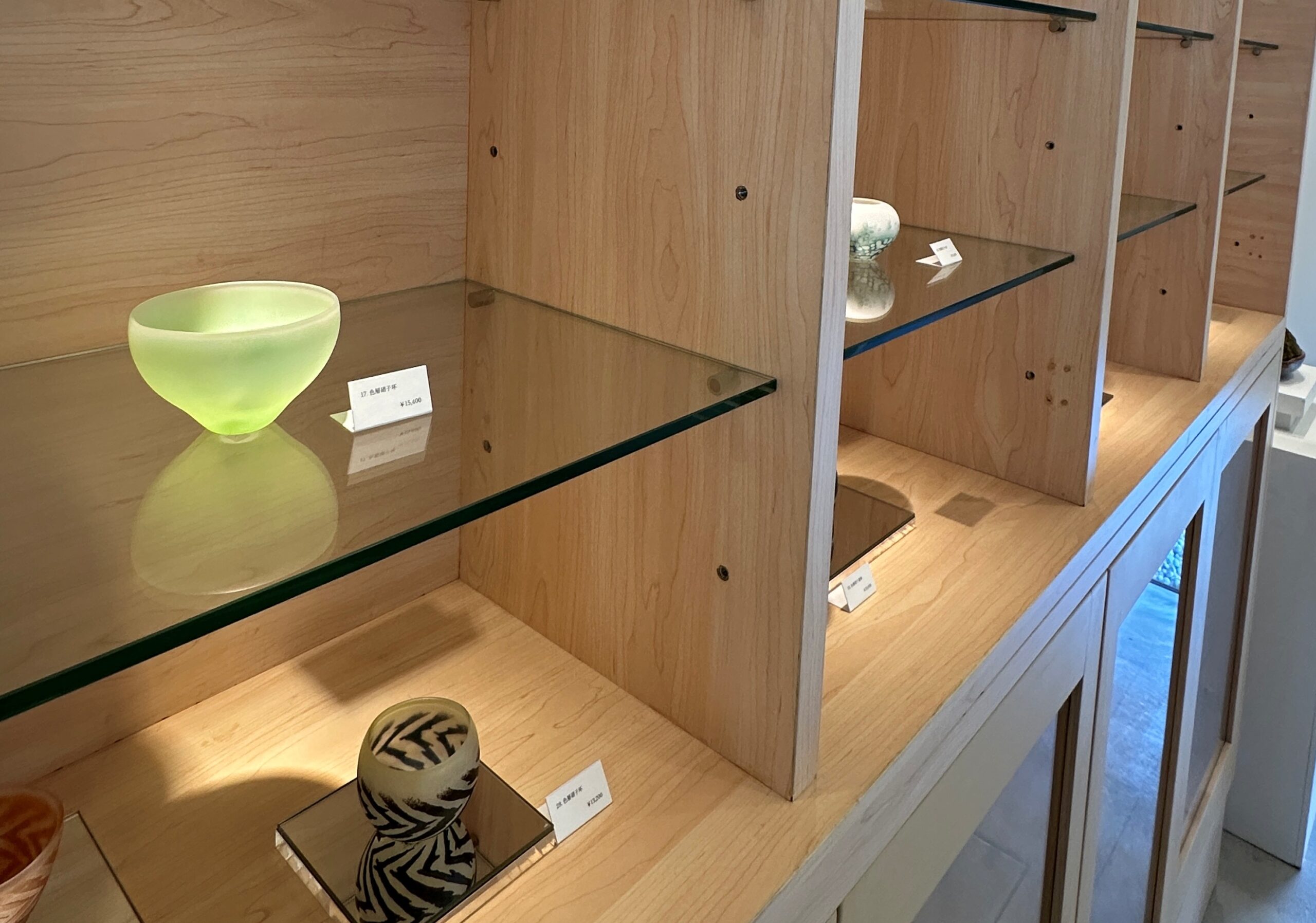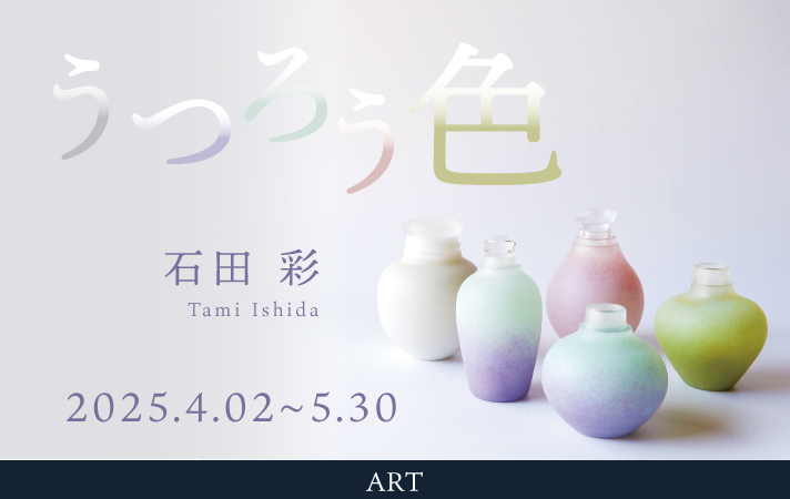 粉状の色ガラスを幾重にも重ね、焼き付け、削り出すことで生まれる繊細なグラデーションと独特の質感を特徴とする、石田彩(いしだたみ)氏の作品を紹介する展示を行いました。