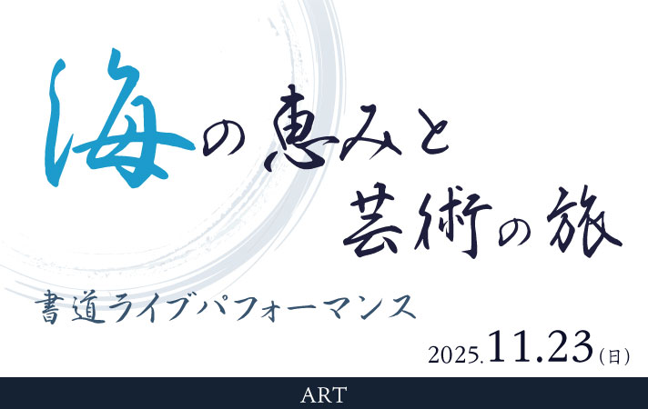 岡山県玉野市出身の書道家・萌愛氏によるライブパフォーマンス「海の恵みと芸術の旅」を開催しました。墨の流れと筆の律動が織りなす静謐な書の世界が、会場に穏やかに広がりました。