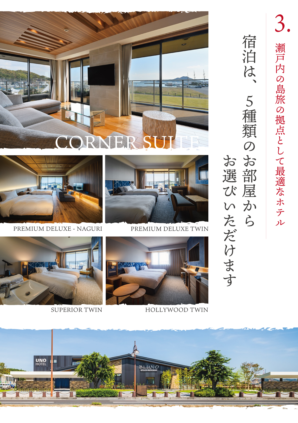 JR岡山駅から宇野みなと線で宇野駅まで約50分。