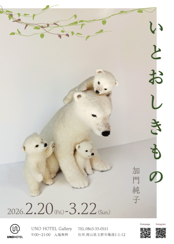 UNO HOTELでは、羊毛フェルト作家・加門純子による作品展 「いとおしきもの」 を開催いたします。