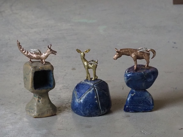 2003年東京芸術⼤学⼤学院鋳⾦専攻修了後、インドネシアで彫刻とロストワックス鋳造を学びました。私の制作の中⼼は鋳造プロセスそのものであり、儚く⼀時的な存在をブロンズという永続的な素材へ転換する点に尽きない魅⼒を感じ、探求しています。
