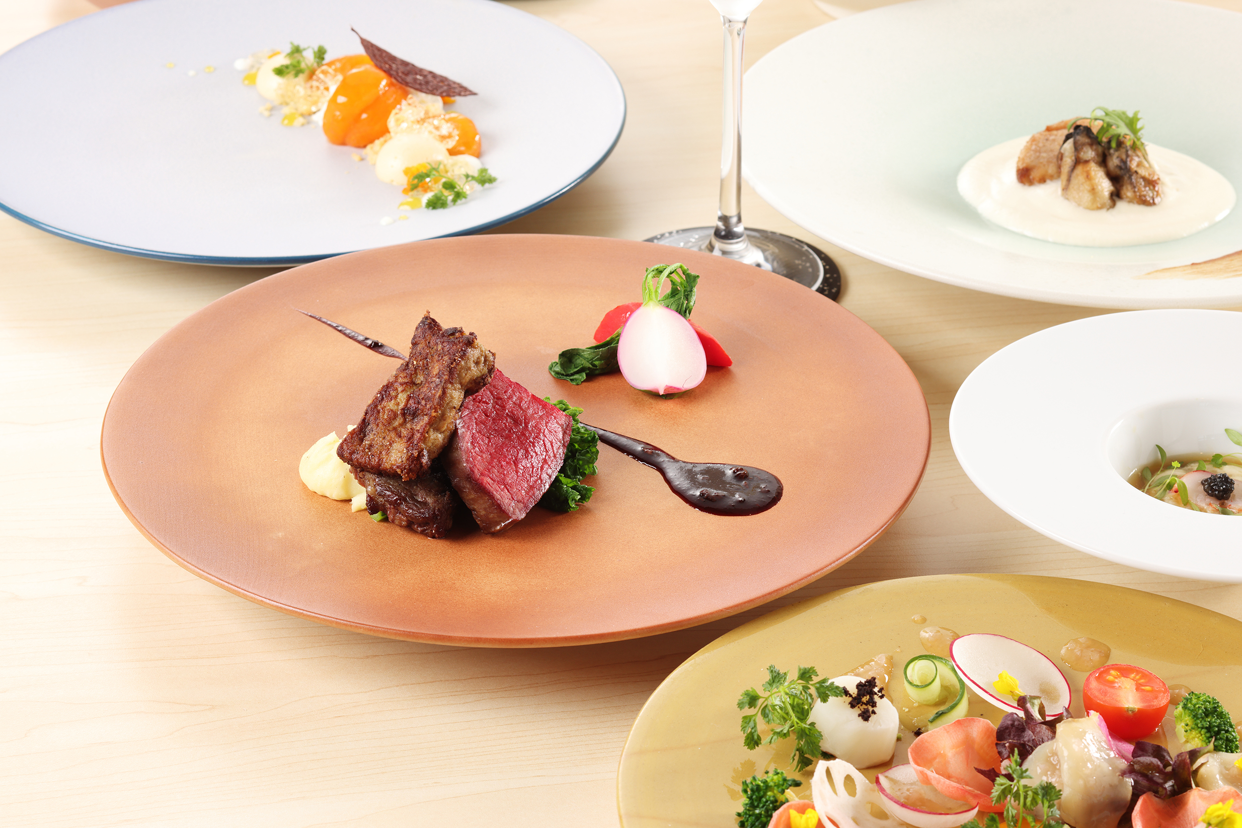 主役級の素材が並ぶ贅沢なコースを、開放感ある空間で気負わずにお愉しみください。